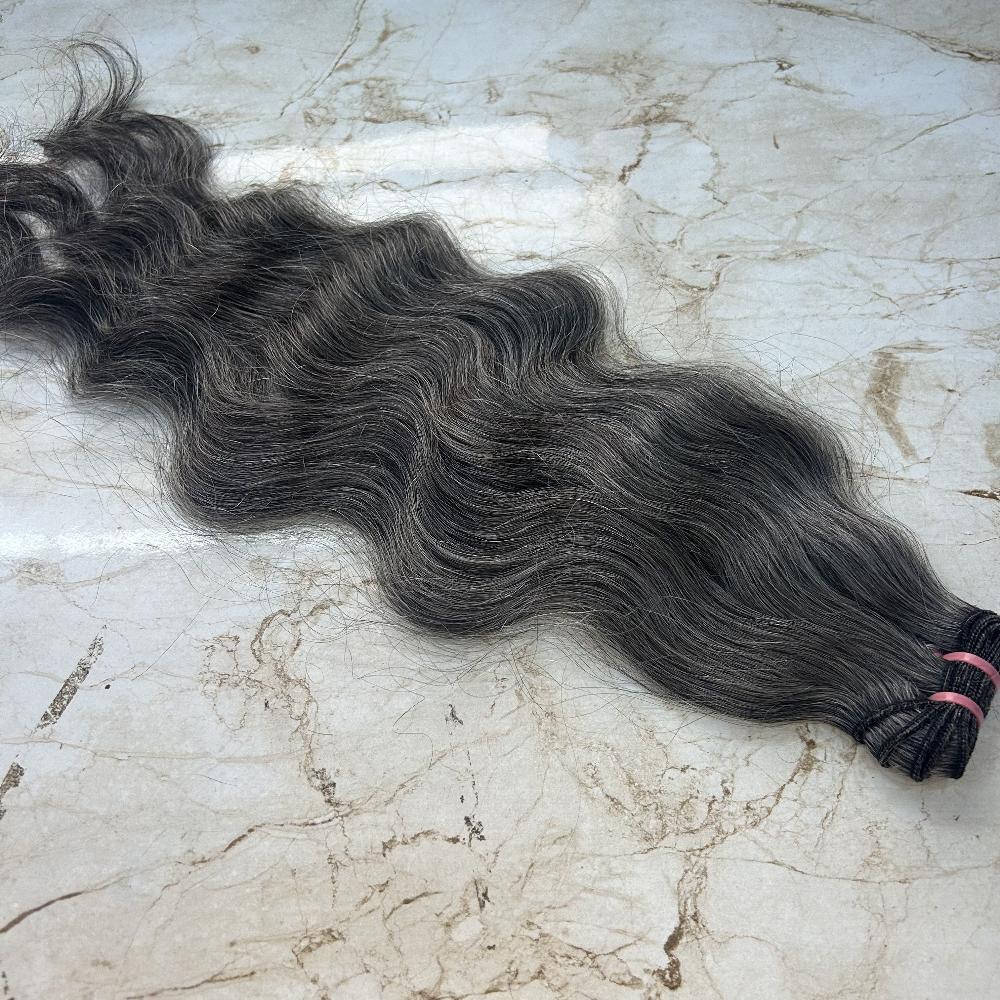 Natural Black and Grey (Salt and pepper) Single Donor Raw Grey Hair Extensions.